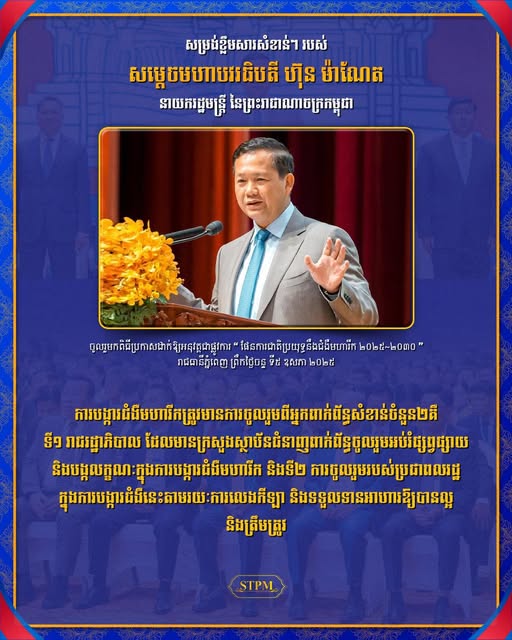 សម្តេចមហាបវរធិបតី បានថ្លែងក្នុងពិធីប្រកាសដាក់ឱ្យអនុវត្តជាផ្លូវការ «ផែនការជាតិប្រយុទ្ធនឹងជំងឺមហារីក ឆ្នាំ២០២៥-២០៣០» ដោយលើកឡើងថា ការបង្ការជំងឺមហារីកត្រូវមានការចូលរួមពីអ្នកពាក់ព័ន្ធសំខាន់ចំនួន២គឺ ទី១ រាជរដ្ឋាភិបាល ដែលមានក្រសួងស្ថាប័នជំនាញពាក់ព័ន្ធចូលរួមអប់រំផ្សព្វផ្សាយ និងបង្កលក្ខណៈក្នុងការបង្ការជំងឺមហារីក និងទី២ ការចូលរួមរបស់ប្រជាពលរដ្ឋក្នុងការបង្ការជំងឺនេះតាមរយៈការលេងកីឡា និងទទួលទានអាហារឱ្យបានល្អ និងត្រឹមត្រូវ។